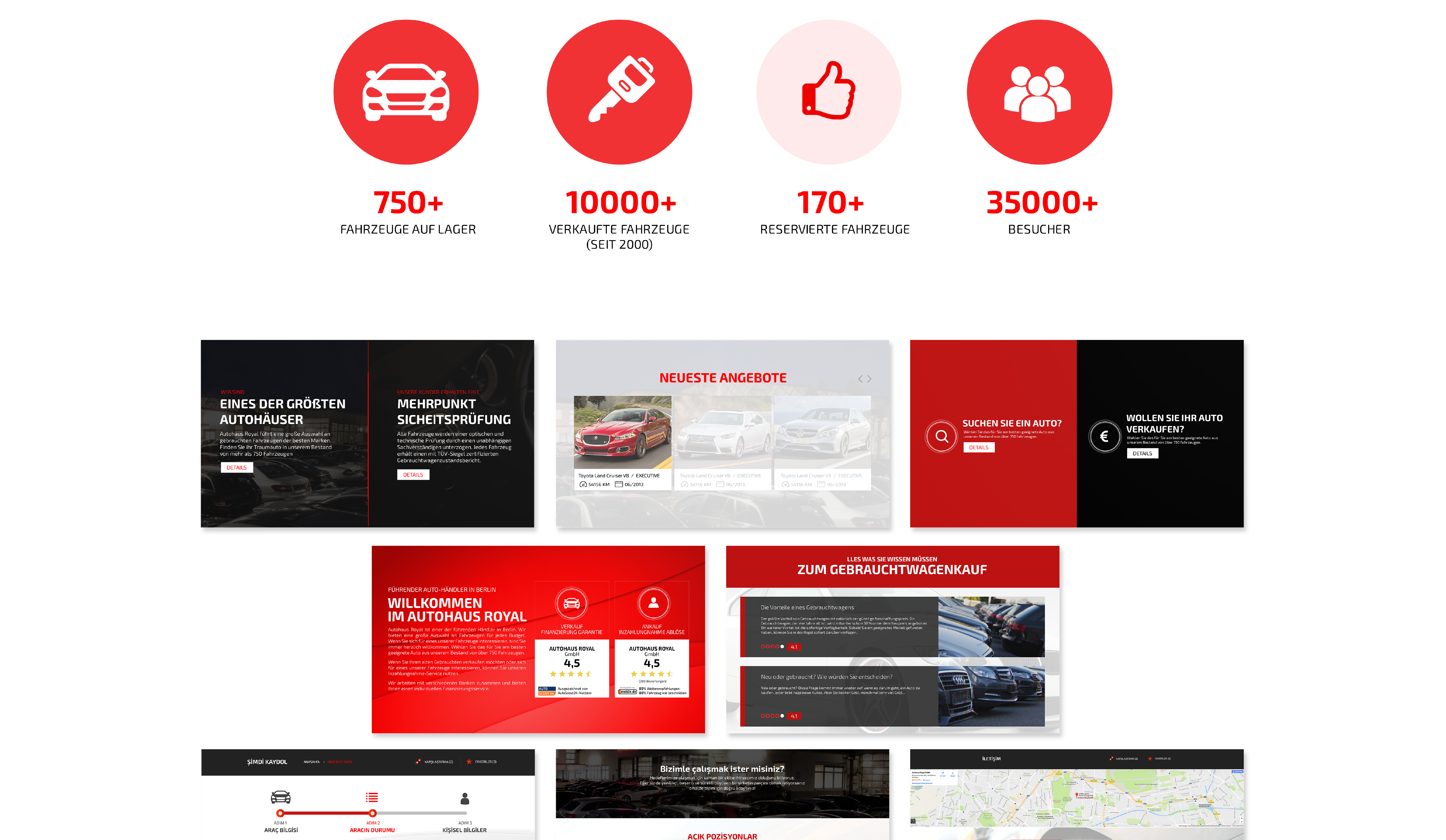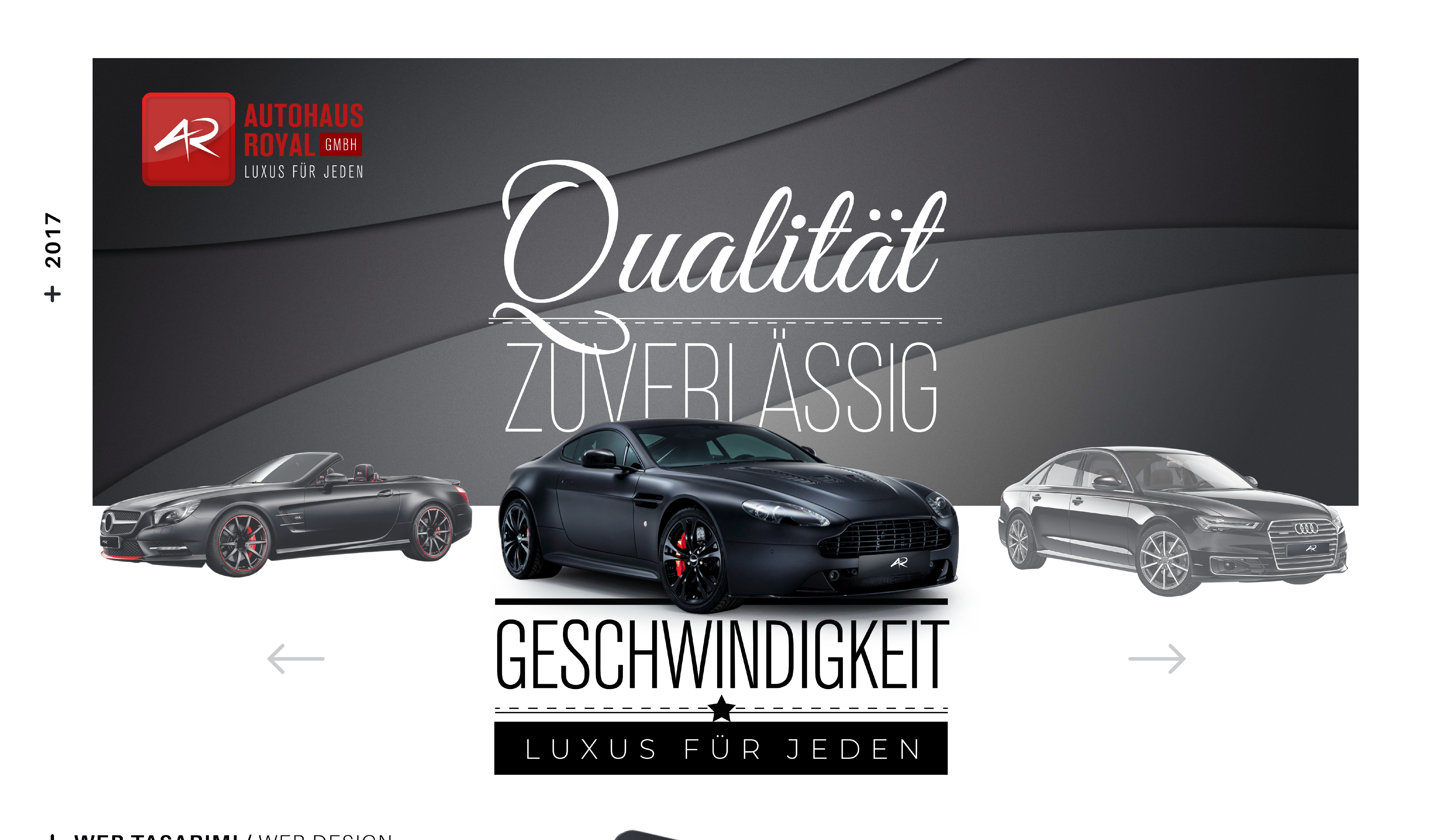 Berlin’in önde gelen araç bayilerinden Autohause Royal için web tasarım çalışmasında; firmanın sektörü ve kurumsal kimliği göz önünde bulundurularak modern çizgilerde bir tasarım oluşturulmuştur. Tasarımda sadelik ve kullanım kolaylığının yanı sıra firma marka değerinin yükseltilmesi ve bilinirliğinin arttırılması hedeflenmiştir.