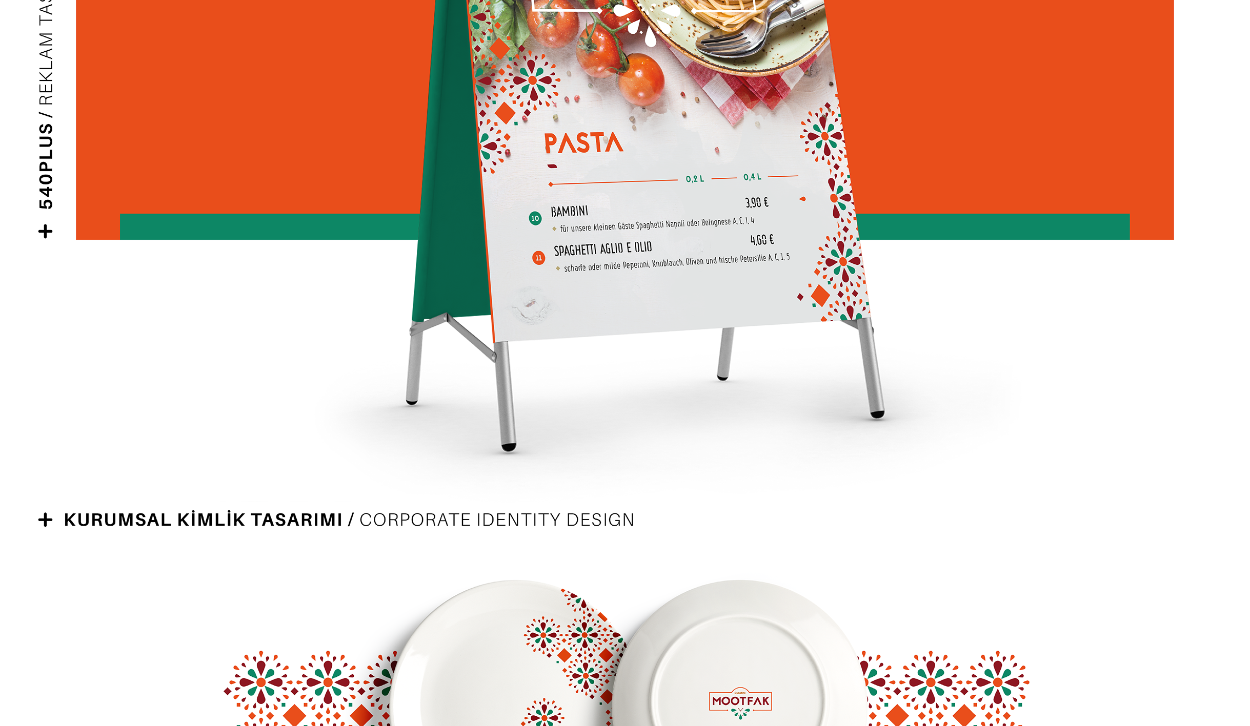 Mootfak isimli kurumsal kimlik çalışmasında yiyecek-içecek sektöründe kullanılabilecek