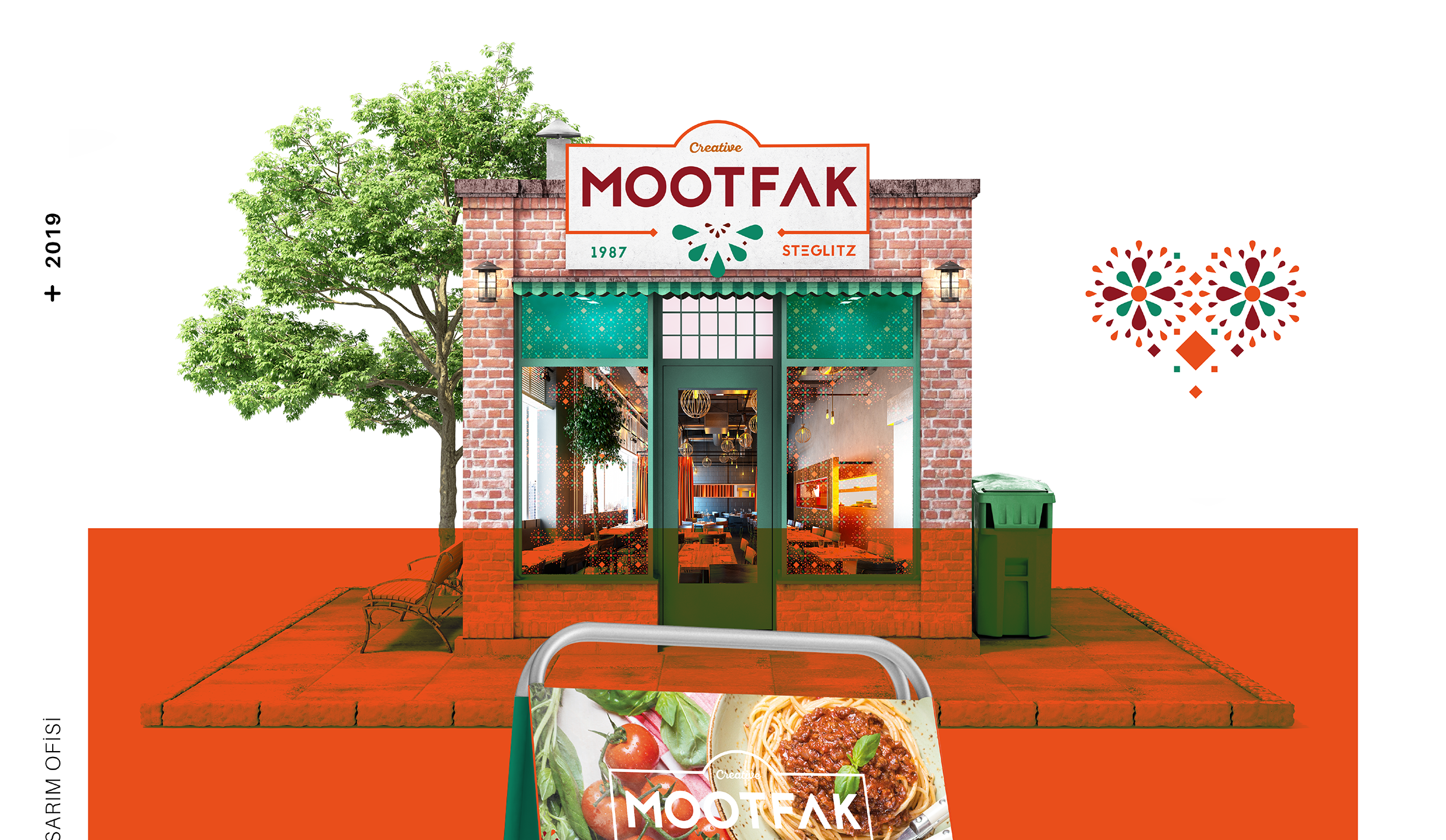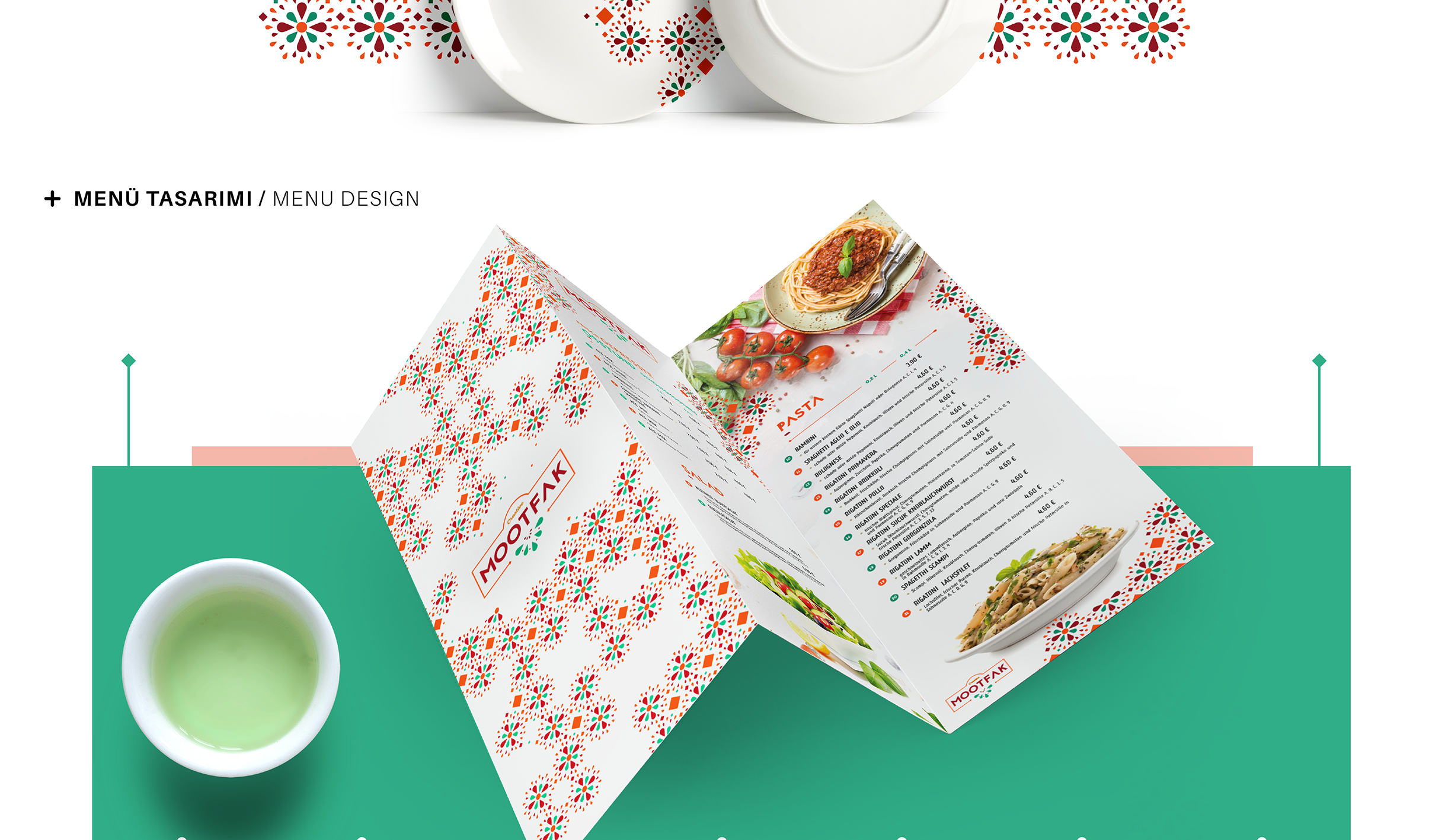 bir tasarım dili oluşturularak, marka çizgisi geleneksel motiflerle birlikte modernlik anlayışıyla tasarlanmıştır. Motifler; menü, tabak, servis kutusu, araba gibi çeşitli mecralarda sade ve